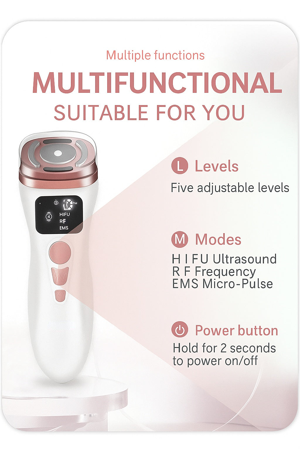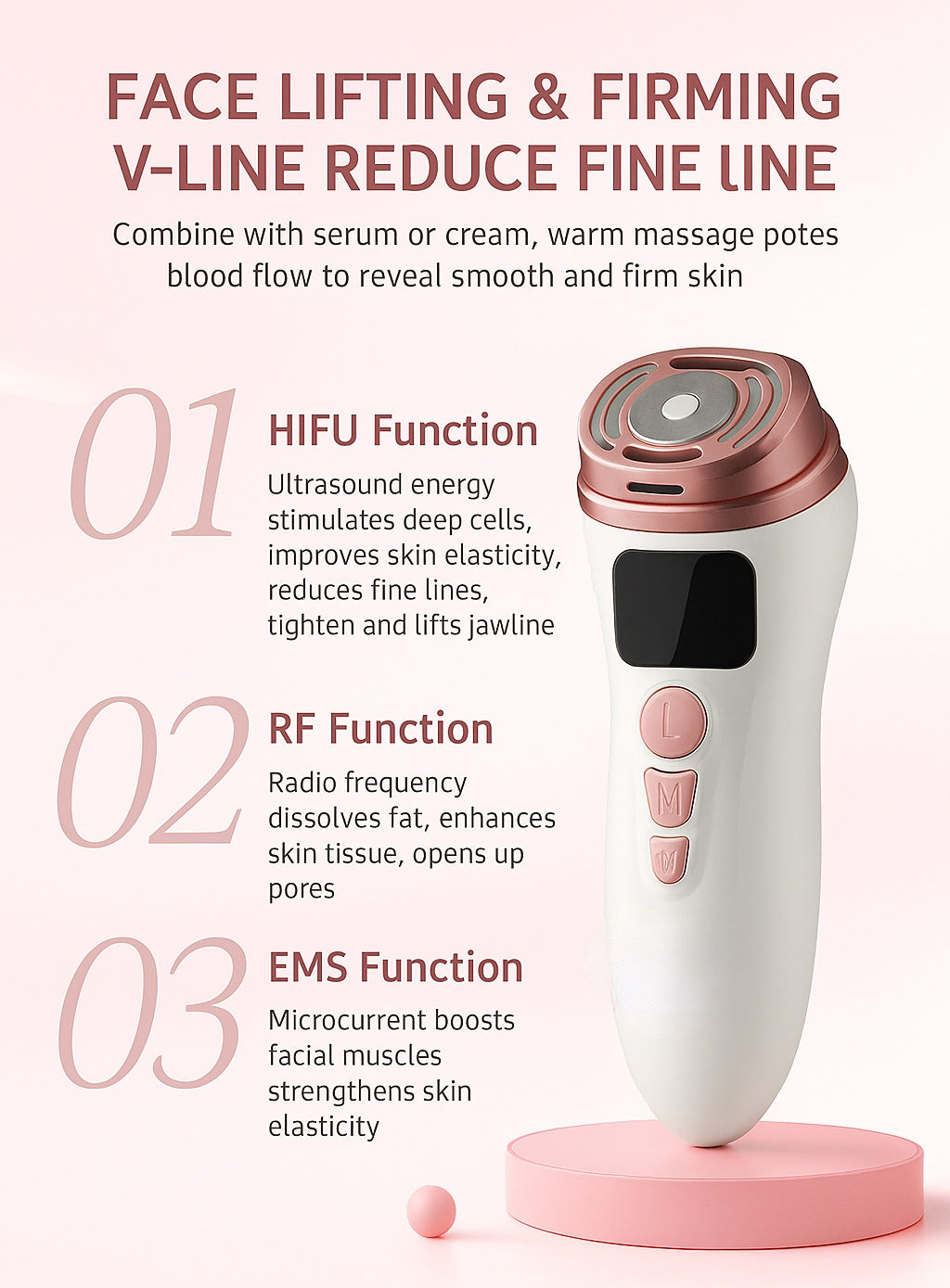 HIFU Anti-Wrinkle Device harnesses the power of High-Intensity Focused Ultrasound to target deep skin layers, stimulating collagen production and tightening sagging areas without needles or downtime. Designed to visibly reduce fine lines, firm facial contours, and restore youthful elasticity, this non-invasive device delivers professional-grade results with consistent use. It's your go-to tool for achieving a sculpted, smoother complexion — naturally and effortlessly.