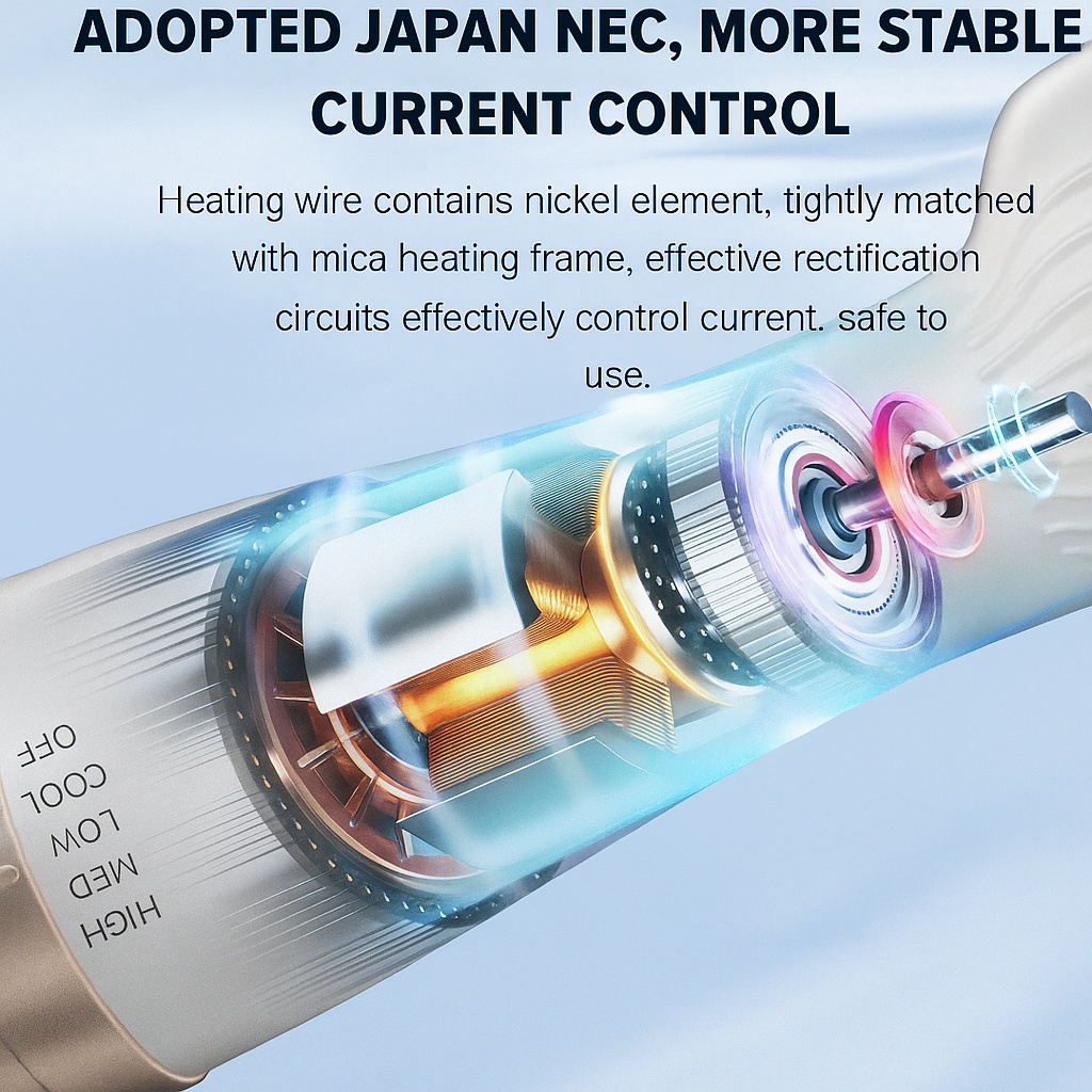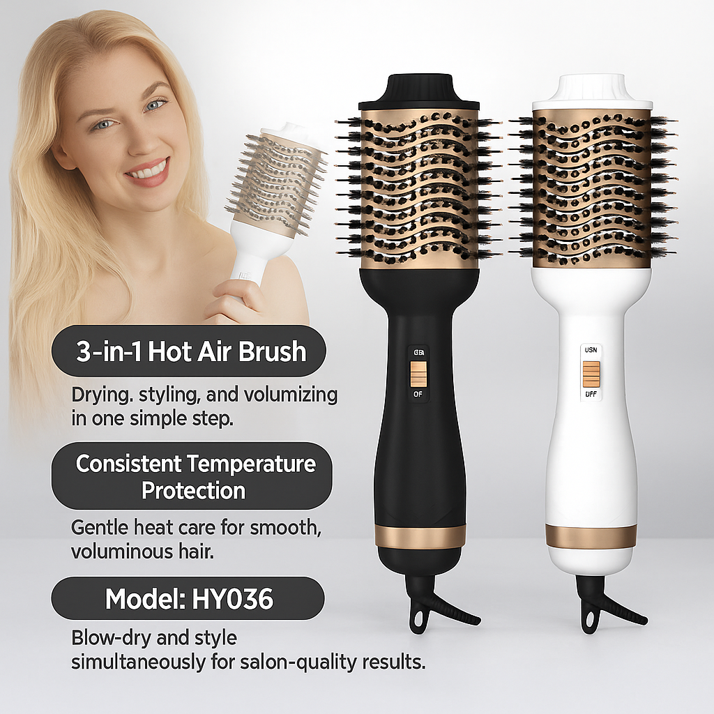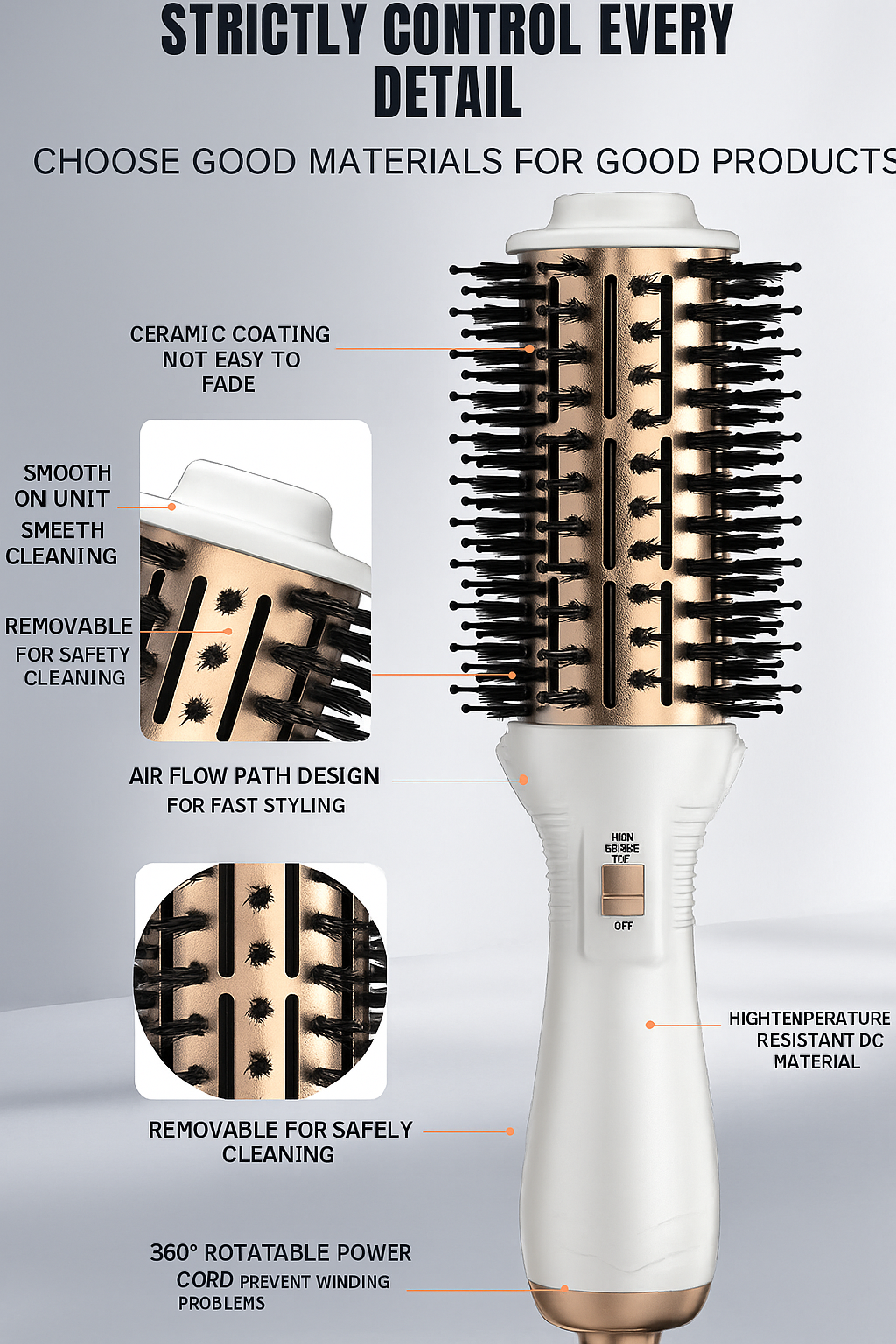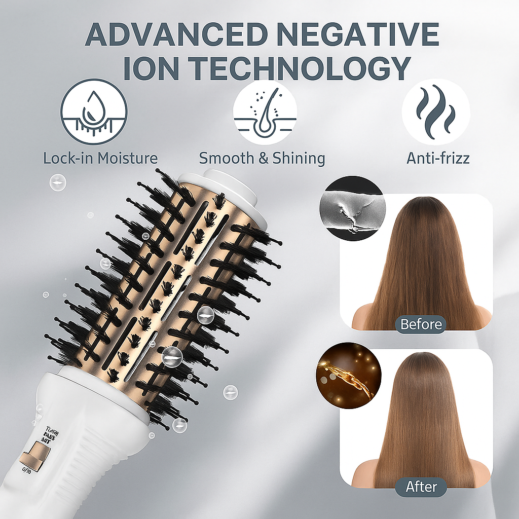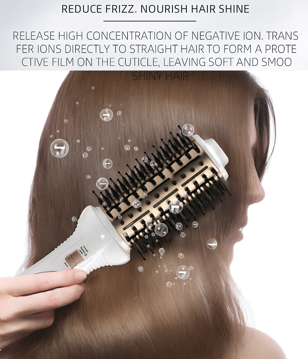 Transform your daily hair routine into a salon-worthy ritual with the Ionic Hair Dryer Brush — where performance meets elegance. This multifunctional beauty essential combines the power of a high-performance dryer with the precision of a volumizing brush, all while infusing strands with negative ions to smooth frizz, boost shine, and lock in moisture.