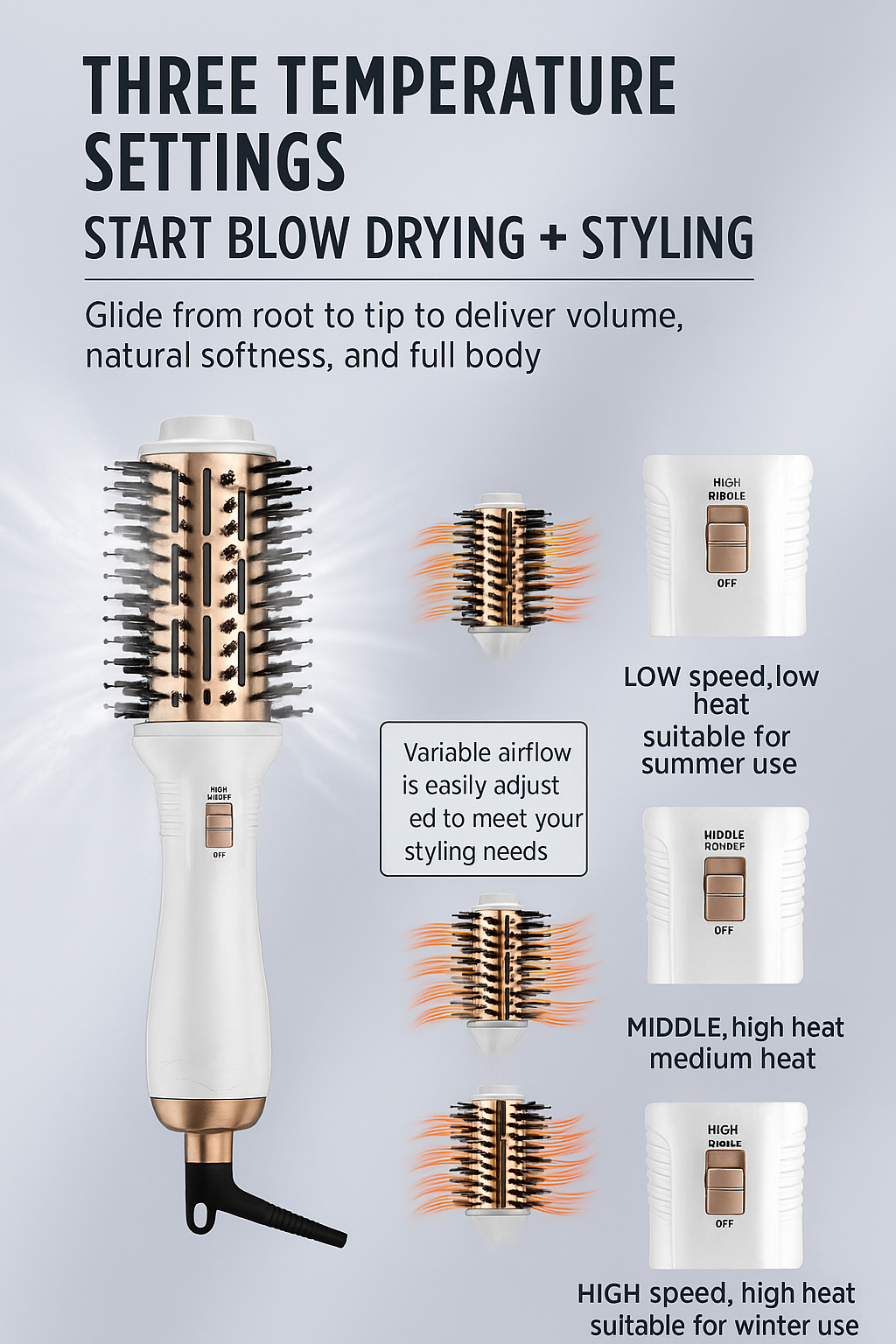 Ionic Hair Dryer Brush – Style, Shine, and Sophistication in One